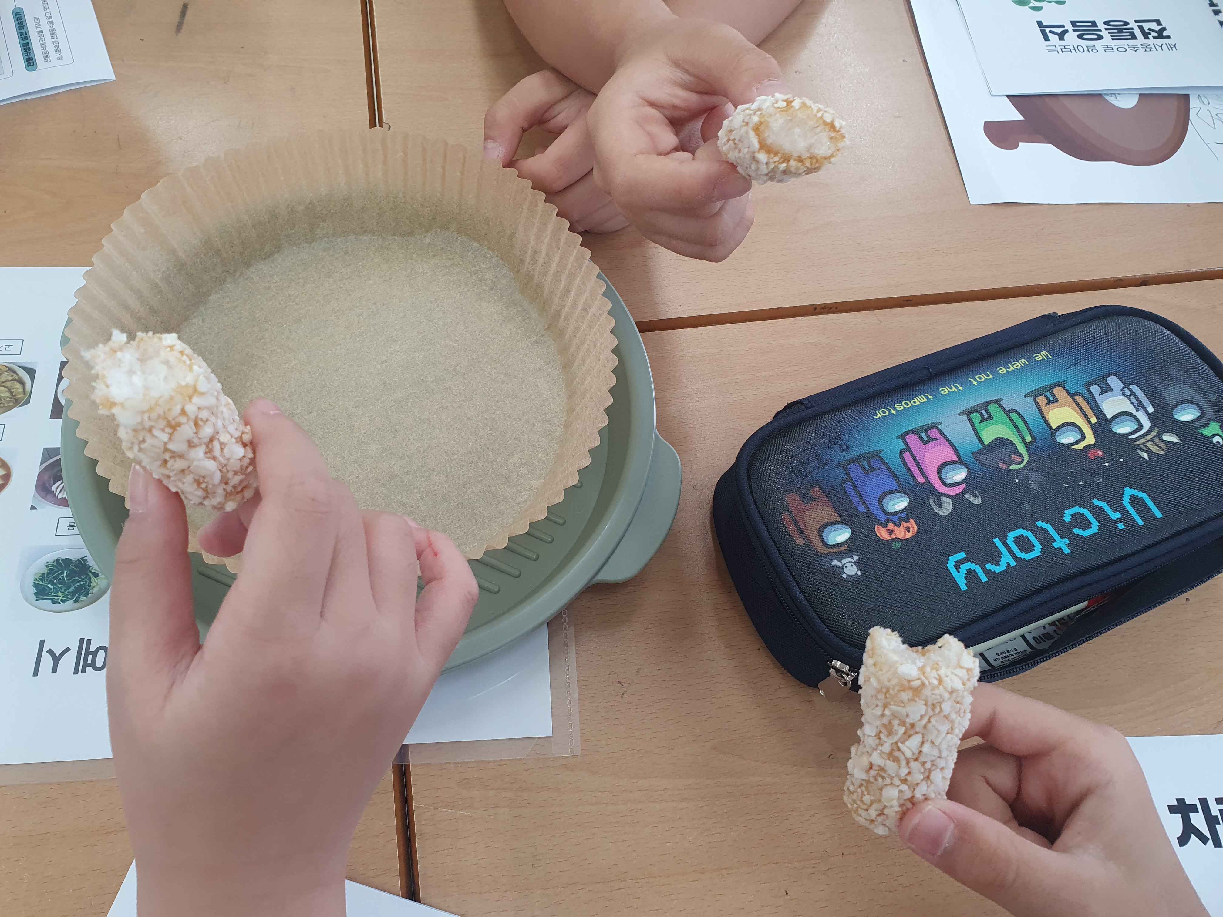 마무리 하였고 전통음식 맛보기로 찹쌀유과를 먹어보면서 더 먹고 싶다고 이야기하는 모습이 기특했습니다.