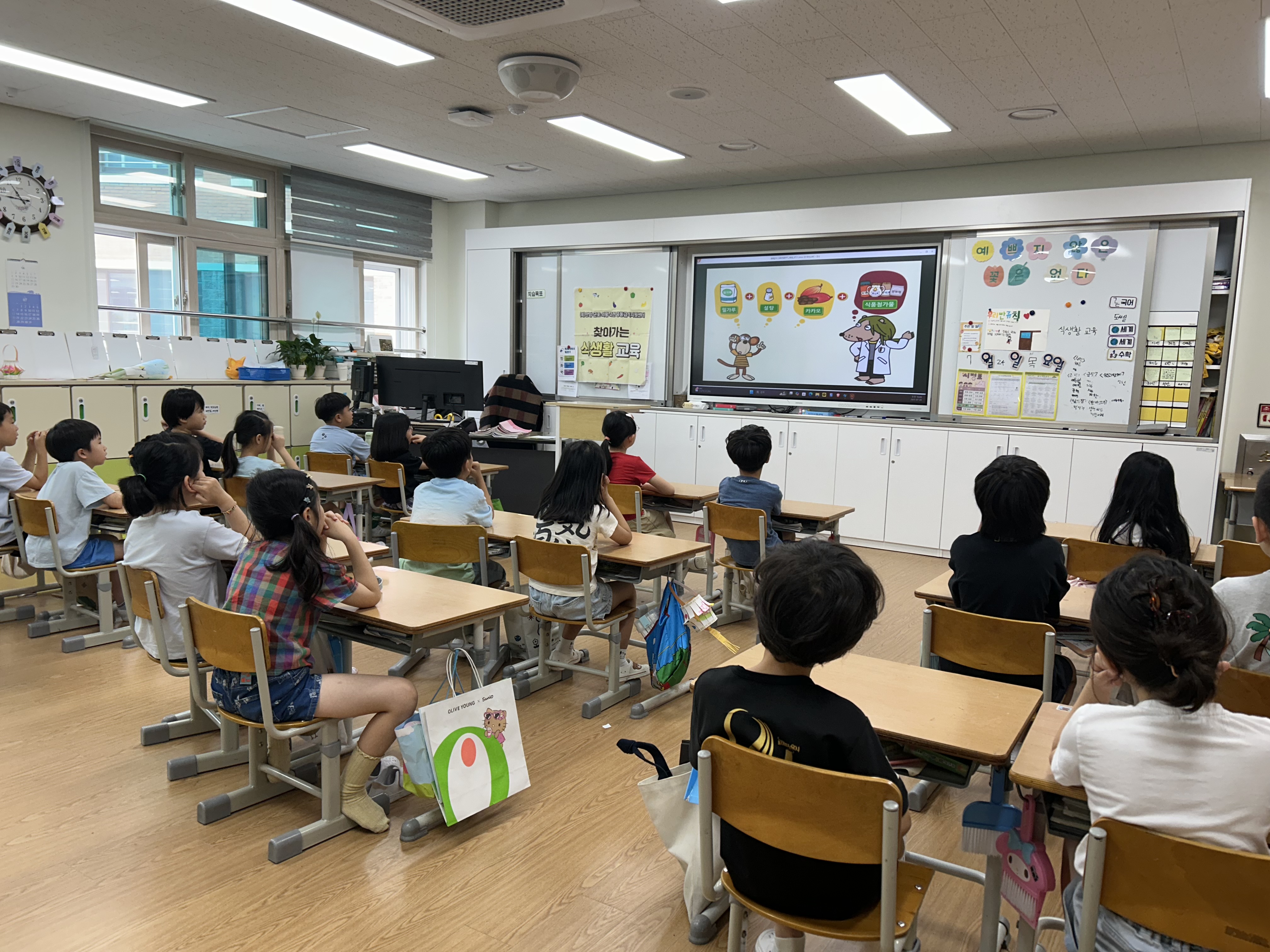 •강의 총평 공장에서 만든 간식중 과자이야기 영상을 보고 식품첨가물에 대해서 알아보았습니다. 자연에서 자란 간식이 우리몸에 주는 유익함을 배워보고 오감체험을 통해 파프리카와 오이를 직접 맛보는 시간을 가졌습니다. 오이, 파프리카도 잘 먹고 더 달라고 하는 학생들도 있고, 처음 용기내서 먹어보는 학생들도 있었습니다.