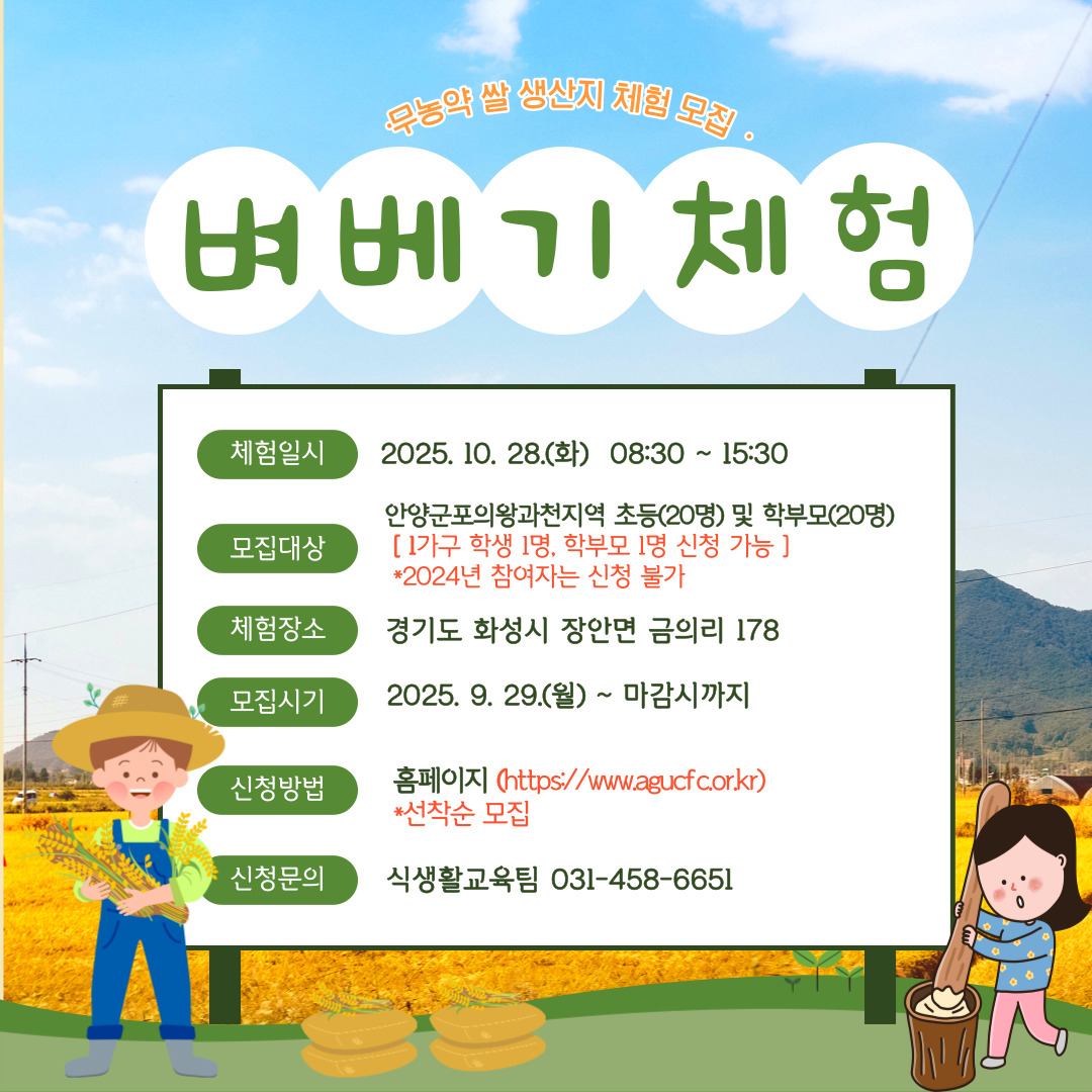2025년 벼베기 체험 모집 안내